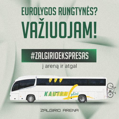 Keliaukite „Žalgirio ekspresu“ ir stebėkite Eurolygos rungtynes kartu su pilna arena fanų. „Žalgirio ekspresas“ vyksta į visas „Žalgirio“ komandos Eurolygos namų rungtynes. „Žalgirio ekspreso“ autobusas jus patogiai nuveš į rungtynes, o po jų saugiai parveš į miestą iš kurio atvykote.